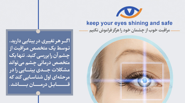 مراجعهی منظم به متخصصان درمانی چشم برای جلوگیری از مشکلات بینایی یا کاهش آن مهم است.