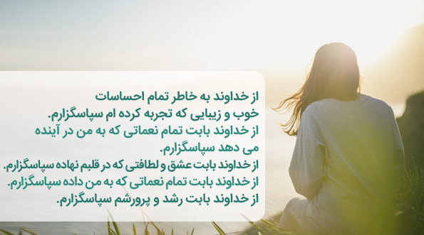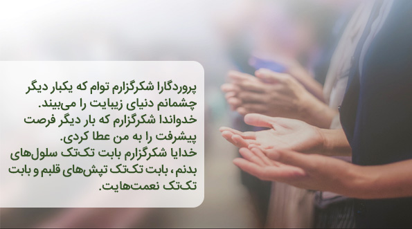 خدایا شکرگزارم بابت تکتک سلولهای بدنم ، بابت تکتک تپشهای قلبم و بابت تکتک نعمتهایت.