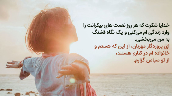 ای پروردگار مهربان، از این که هستم و خانواده ام در کنارم هستند، از تو سپاس گزارم.