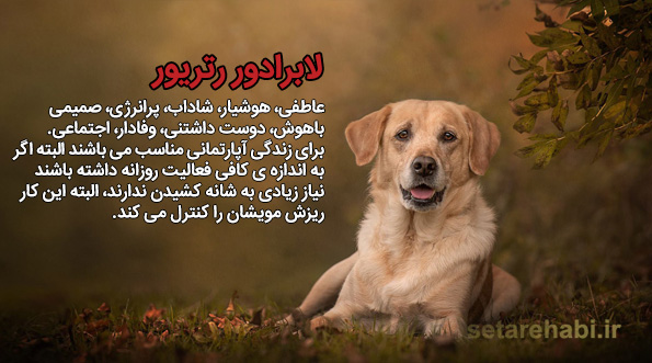 نژاد با استعداد و باهوش که دوست دارند همیشه در حال فعالیت باشند و عاشق این هستند که صاحب خودشان را همیشه راضی نگه دارند بنابراین قدرت آموزش پذیری بالایی دارند. نژاد لابرادور رتریور به مدت 27 سال هست که در کشور آمریکا به عنوان محبوب ترین سگ شناخته می شود.