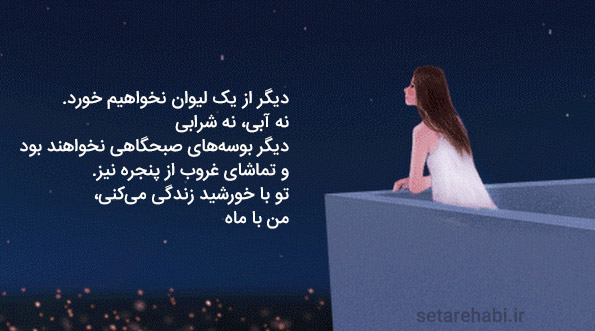 دیگر بوسههای صبحگاهی نخواهند بود و تماشای غروب از پنجره نیز. تو با خورشید زندگی میکنی، من با ماه. در ما ولی فقط یک عشق زنده است.برای من، دوستی وفادار و ظریف، برای تو دختری سرزنده و شاد.