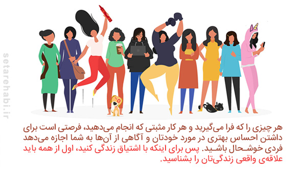 هر چیزی را که فرا میگیرید و هر کار مثبتی که انجام میدهید، فرصتی است برای داشتن احساس بهتری در مورد خودتان و آگاهی از آنها به شما اجازه میدهد فردی خوشحال باشید. قبل از هر چیزی باید فعالیتی را که عاشق انجام دادنش هستید پیدا کنید. شادی حاصل از انجام این چنین فعالیتی هرگز رنگ نمیبازد. نویسندگی، نوآوری، کارهای خیر، ورزش یا هر چیز دیگری که عمیقا مورد علاقهتان باشد، دوز لازم چالش و هیجان را به زندگیتان تزریق خواهد کرد. پس برای اینکه با اشتیاق زندگی کنید، اول از همه باید علاقهی واقعی زندگیتان را بشناسید.
